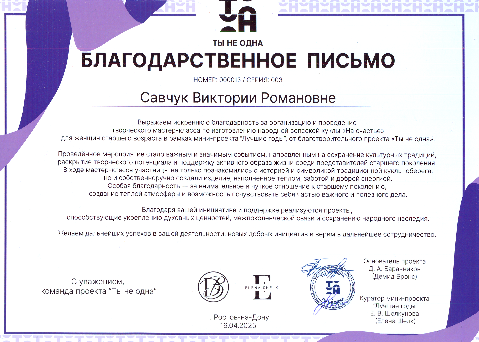 Дипломы и благодарственные. Фотограф в Ростов-на-Дону Виктория Савчук